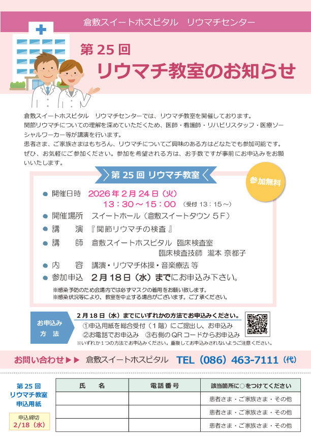 • 第25回リウマチ教室開催のご案内(2/24開催)